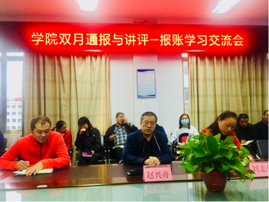 2020年10月16日,beat365在办公楼401会议室召开了学院双月通报与讲评-报账学习交流会。副院长刘志红主持,党委书记赵兴舟出席,各部门主要负责人、报账员以及财务处全体人员参加。