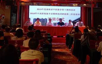 受湖南省教育厅委托,为提升我省中职院校数学教师职业素养,7月11日,“2019年湖南省中职数学骨干教师培训班”在beat365隆重开班。院长陈剑旄、副院长朱焕桃,基础部部长王超,软件学院院长蔡琼、袁文豪书记,基础部负责该培训的相关老师以及来自我省各地级市的40位培训班学员(年级最小为23岁,最大为56岁)出席了开班仪式。开班仪式由beat365党政办主任廖继旺主持。