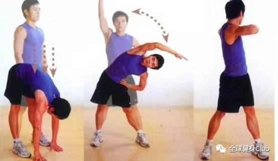 先用小重量或徒手来做组动作,也要及时对相关的肌肉拉伸。在练习前做大概5分钟的拉伸运动1~2组练习,每组练习15-20次,拉伸运动后还要做适当的适动,特别是要按照练习的部位与目的,做应性运动。主要是针对接下来要锻炼局部肌肉充分进入运动状态。
