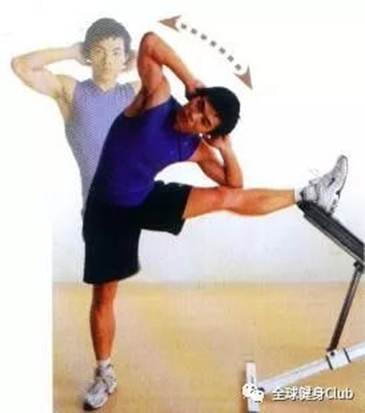 侧向单杠或其他固定物,一脚抬到和胯一样高的位站立脚在身体的正下方,脚尖尽量往正前方。抬起脚脚尖往上,双手抱头,上身尽量往抬起脚的方向下压。左右腿各做2到3次,每次坚持30秒。