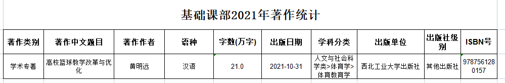 基础课部2021年著作统计