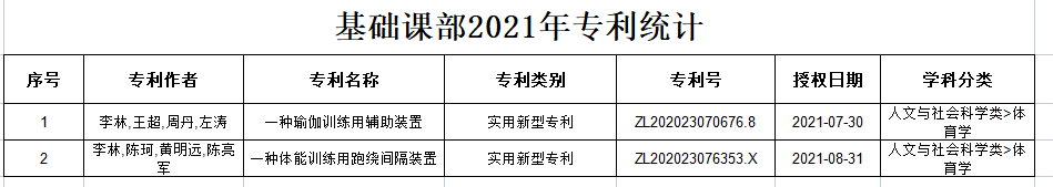 基础课部2021年专利统计