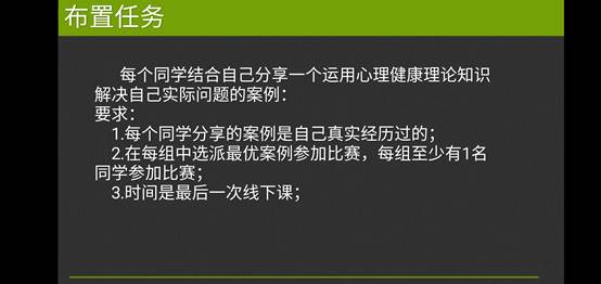 第五次课(学生分享运用心理知识解决自己实际问题的案例,附下图)。