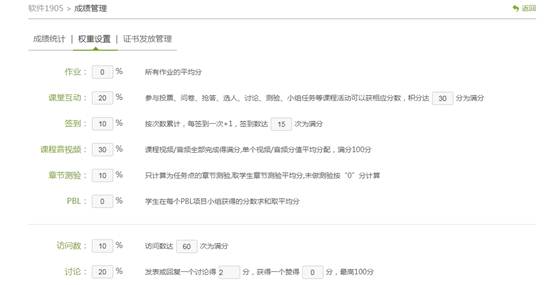9.关于本学期各部分参数需老师们自己设置,没有混合年级的可用自己账号勾选对所有班级生效,有混合年级的只能先一键设置,再逐个修改大二班级。大一参数如下: