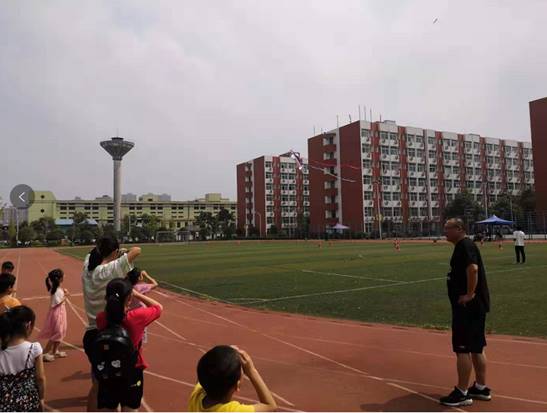 见识玩机器人后,孩子们又来到室外,观看一场无人机飞行表演。无人机飞行表演中“螺旋上升”、“极速俯冲”、“附挂悬空”等高难度表演动作让孩子们瞠目结舌,忘了言语。