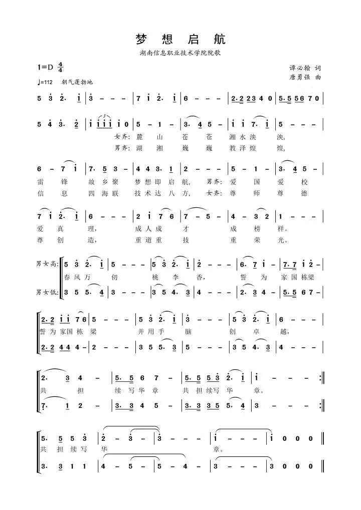 湖湘巍巍,教泽煌煌,信息四海联,技术达八方,尊师尊德尊创造,重道重技重荣光。春风万仞桃李香,誓为家国栋梁,誓为家国栋梁。并用手脑创卓越,共担续写华章,共担续写华章。