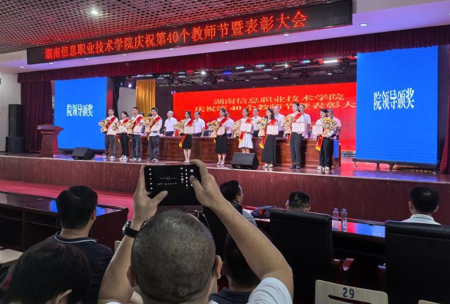 2024年9月10日,根据学院《关于做好2024年“师德师风标兵”“优秀教师”“ 优秀辅导员”“优秀教育工作者”“清廉教师”推荐工作的通知》要求,经各部门推荐、牵头部门评选,人事处(教师工作部)组织专家初审,拟推荐我支部黄亚辉为师德师风标兵人选,袁雪琼、陈圣明、张雷为优秀教师,吴再华为优秀教育工作者人选。学校召开全体教师大会,对优秀的教师们给与了颁奖与鼓励。