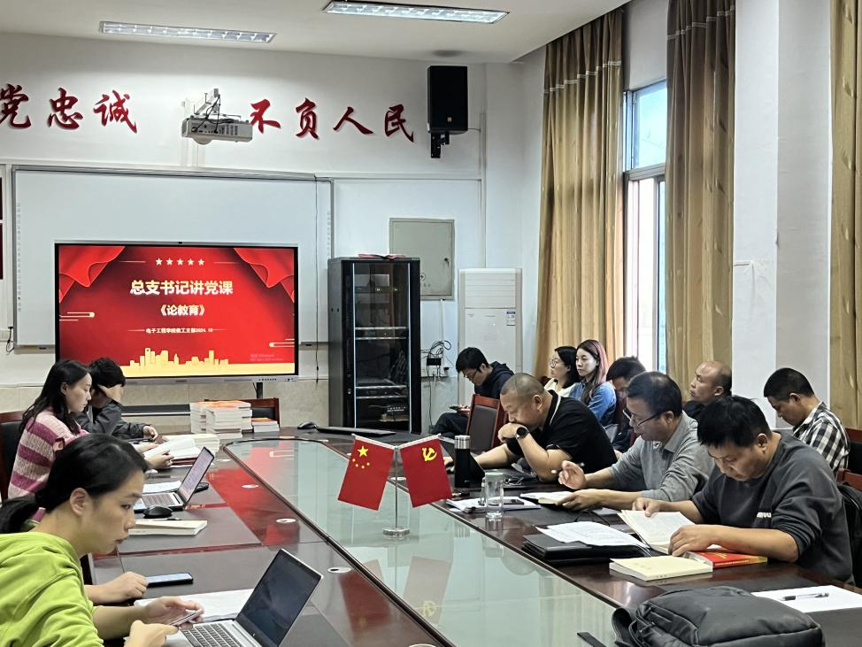 2024年10月15日下午,电子工程学院教工党支部全体党员在电子工程学院党总支书记邱立国同志的带领下,集中学习了《论教育》读本。学习《论教育》读本。主要进行了三个方面的学习。