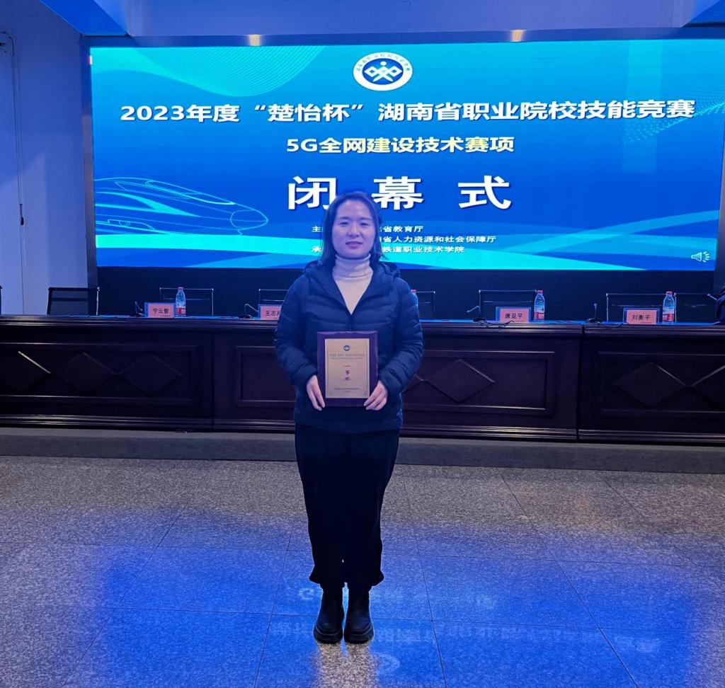 曹老师热爱教育事业,深耕职业教育十余载,在通讯技术专业领域刻苦钻研,时时精进。近年来,她先后获得省级以上各类荣誉20余项,发表高水平学术论文7篇,主持参与课题10余项,获发明专利、实用新型专利5项。曹老师顾全大局、锐意进取、精益求精的工作态度是促使她成功的基石。她多年竞赛带赛经验“传帮带”这一“独门秘籍”使得她指导过的学生在耳濡目染中亲其师而信其道。曾在国赛获奖的学生表示,愿意主动协助老师指导学弟学妹备赛训练,从专业技能到参赛情绪调节、突发情况处理和应赛技巧,教学相长、循循善诱,使得“新老传帮带工程”得以薪火相传。“曹老师躬先表率,是我们心目中名副其实的‘女神’老师,在曹老师“一等奖”光环的指引下,参赛学生们信心十足,实力发挥,也取得2个“二等奖”的好成绩。