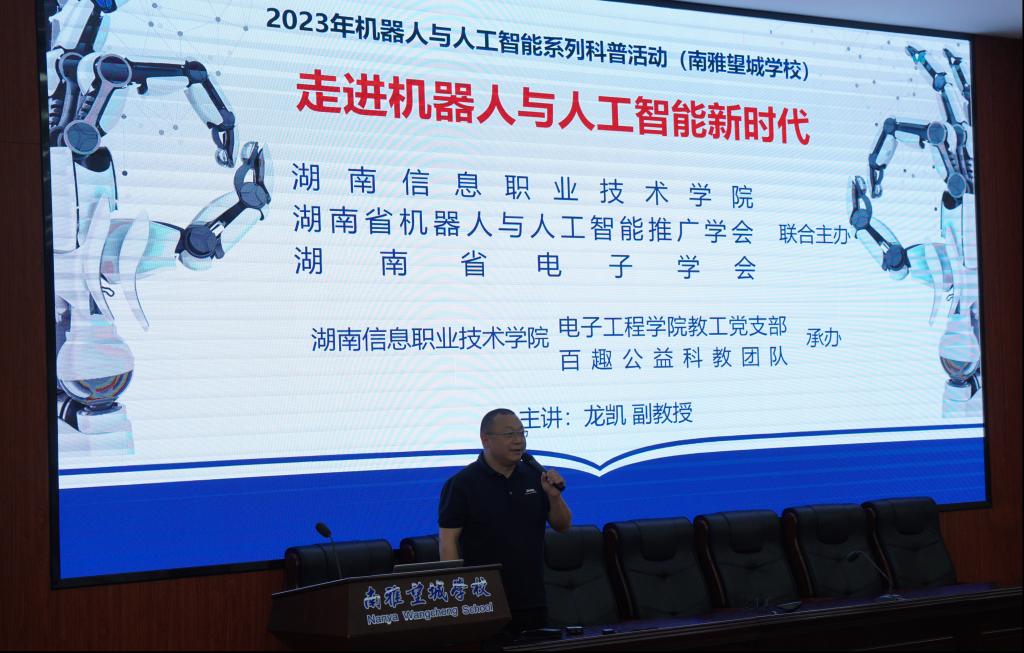 为深入贯彻落实习近平总书记关于科技创新的重要论述,扎实推进“产教融合、职普融通、科教融汇”,培养青少年科技应用和创新实践综合能力。4月20日,beat365英国官方网站联合湖南省电子学会、望城区教育局、湖南省机器人与人工智能推广学会、长沙市望城区科学技术协会、百趣公益科教团队在南雅望城学校开展“烛光义教——人工智能 科技让世界更美好”主题校园科普活动。此系列主题活动,已在望城各中小学开展累计超过10余场,服务学生人数超万,得到了望城地区中小学校的一致点赞。