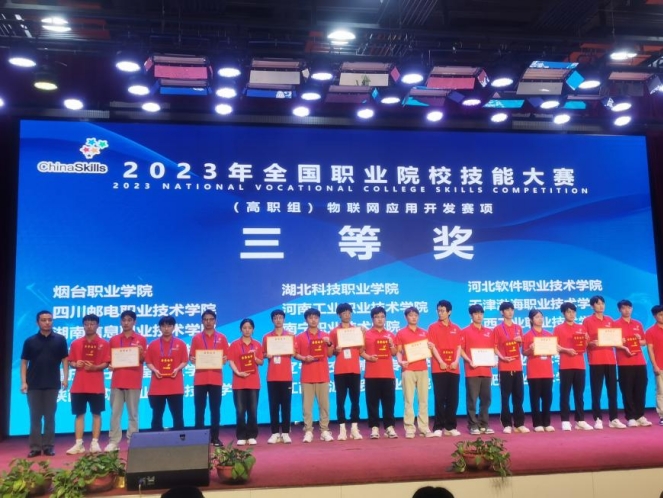 近日,2023年全国职业院校技能大赛(高职组)物联网应用开发赛项在宁夏职业技术学院圆满收官。湖南信息职院代表队从全国59支队伍中脱颖而出,首战告捷,获三等奖,实现了学院此赛项“国字号”荣誉的突破。