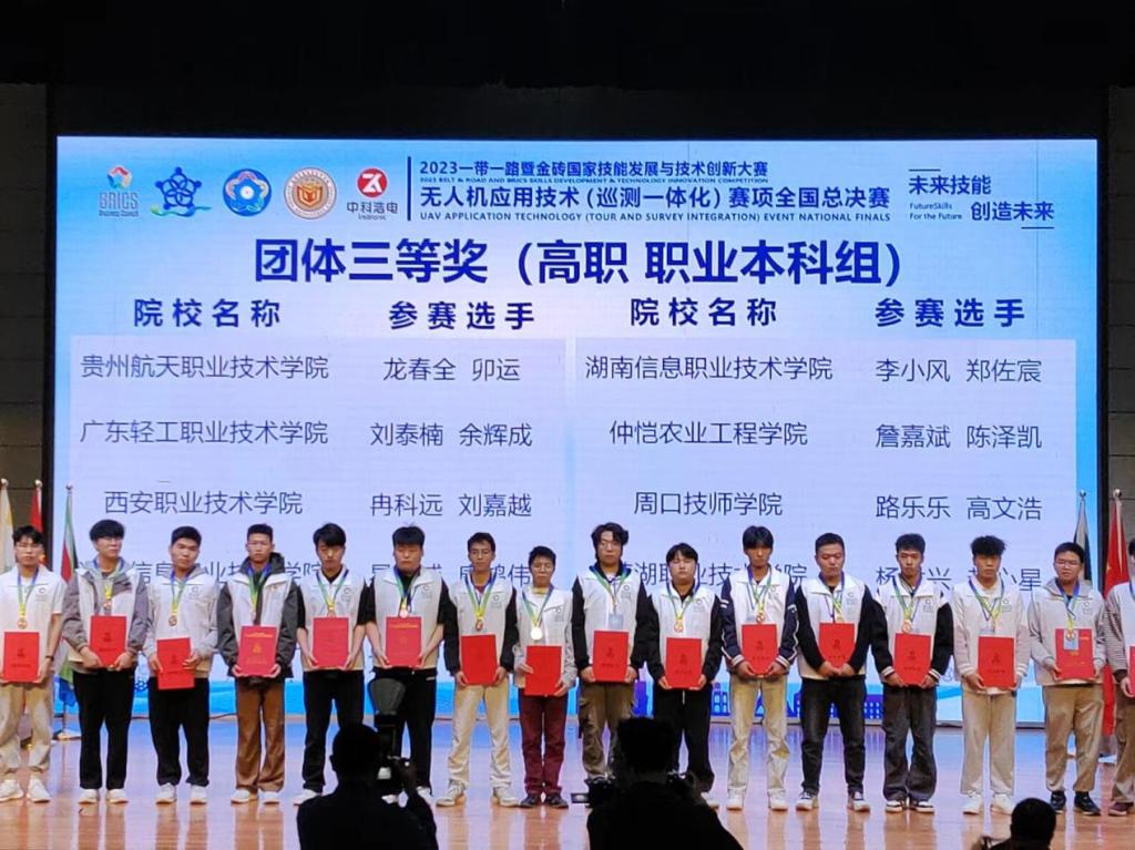 2023年一带一路暨金砖国家技能发展与技术创新大赛之无人机应用技术(巡测一体化)决赛于10月23日在昆明冶金高等专科学校圆满落幕。beat365英国官方网站代表队从全国36所高职院校中脱颖而出,斩获全国“三等奖”两项,为beat365英国官方网站无人机应用技术专业新添“国字号”荣誉两枚。