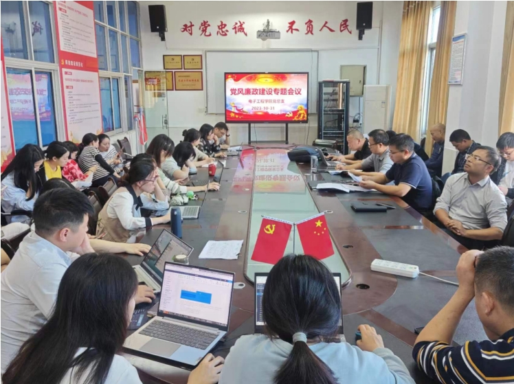 近日,电子工程学院党总支在15-407会议室召开了一场党风廉政建设警示教育会议。会议旨在提高全体党员对党风廉政建设重要性的认识,加强廉政意识,促进学院健康发展。