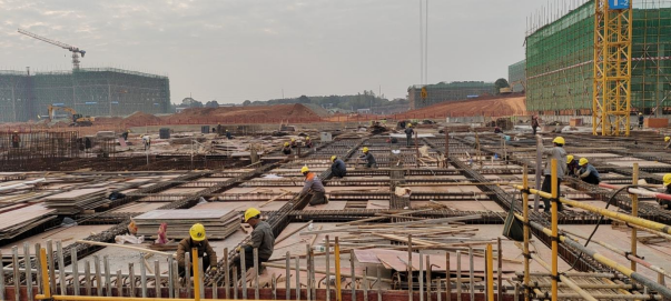 7. 9#栋: 5区二层板浇捣完成、1区2区4层板钢筋绑扎完成、3区4层支模架搭设完成、4区3层板浇捣完成。(1台大挖、4台小挖,杂工、木工、钢筋工、管理人员共计:80人)