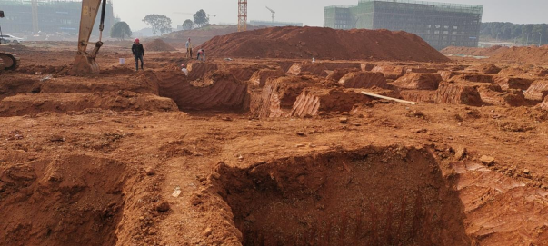2. 2#栋:基础开挖。(小挖机2台、大挖机1台、杂工、管理人员共计:10人)