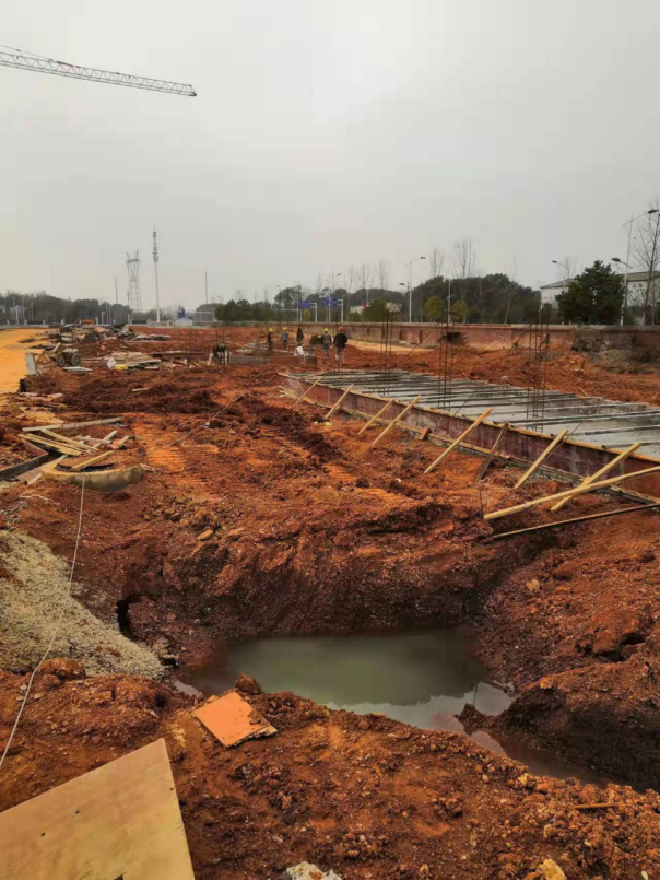 5. 6#栋:1-7轴支模架搭设完成。(2台小挖、木工、钢筋工、管理人员共计:40人)