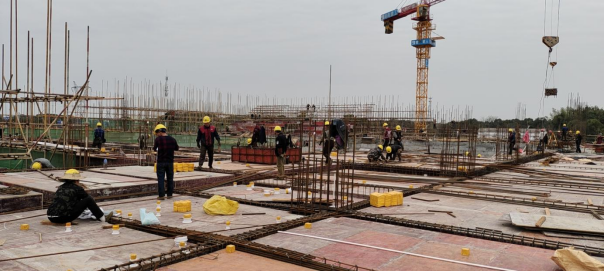 15.20#栋:一层柱、二层楼砼浇捣,二层柱、顶层楼板钢筋绑扎。