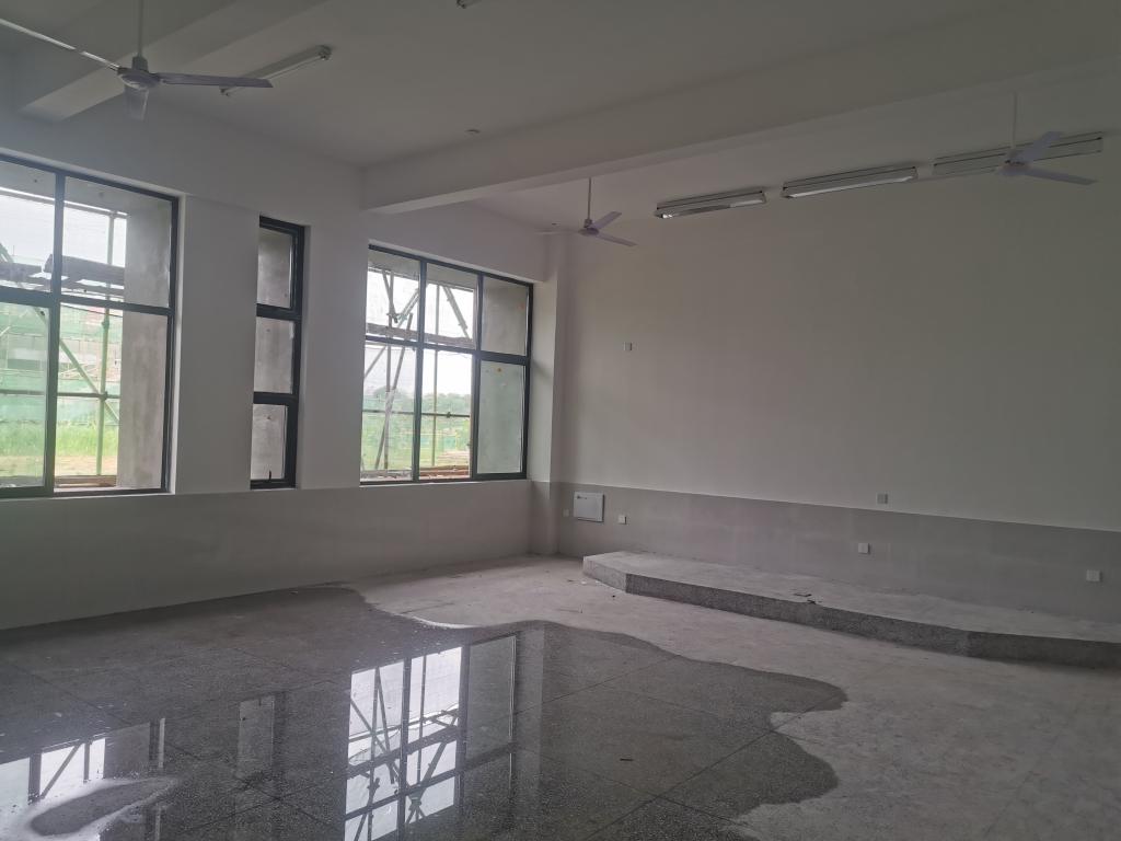 4、4#栋:1-5层水磨石粗磨完成95%,腻子头遍2-5层完成90%,1-5层窗框安装90%,外墙腻子完成30%,一层给水管安装已完成, 屋顶防雷接地网安装完成。