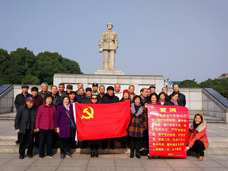 中餐后,来到了雷锋纪念錧,一幅幅图片和一件件物品展示了雷锋同志的光辉一生。通过参观学习,全体老党员同志们对雷锋事迹和雷锋精神有了更加深入的了解。在思想上受到了深刻教育。大家怀着激动的心情在雷锋雕像前重温入党誓词并合影留念。在铮铮誓词声中,更加坚定了所有党员同志对党的无限热爱与忠诚。