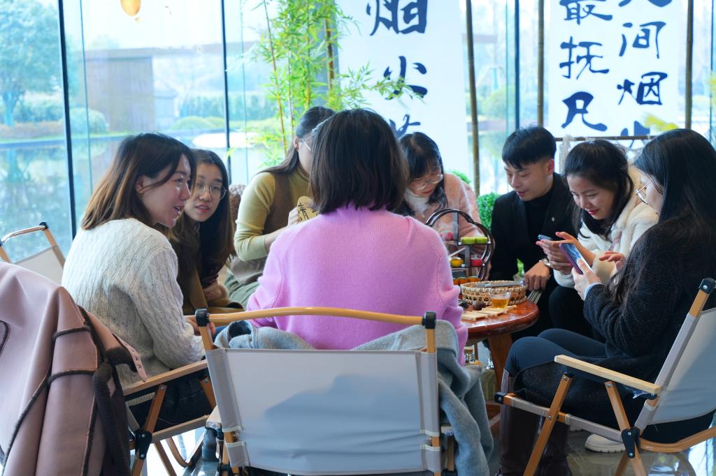 在活动当日,红彤彤的炭火,慢慢煨着茶水,再配上茶歇烤物,俨然一幅写实版的“偷得浮生半日闲”。让各位女教职工在此围炉而坐,慢喝、细品、赋闲,轻松享受专属节日的雅趣,寻回久违的松弛人生,丰富了精神生活。