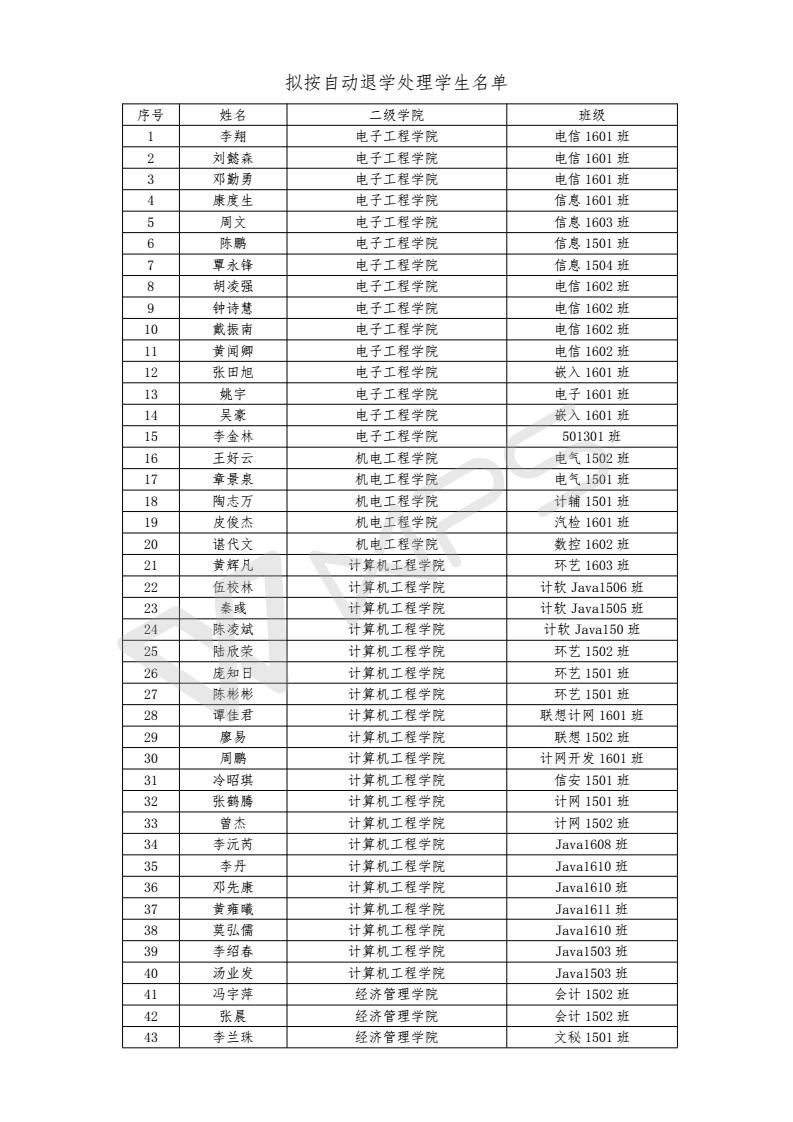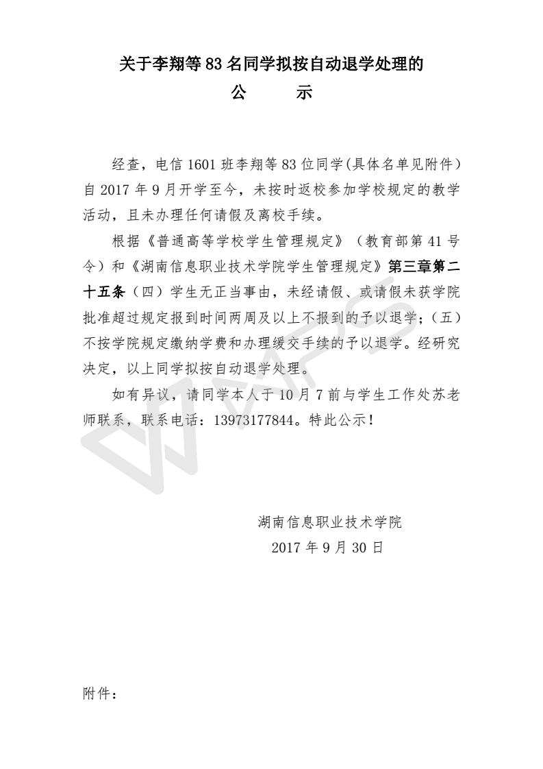 关于李翔等83名同学拟按自动退学处理的公示