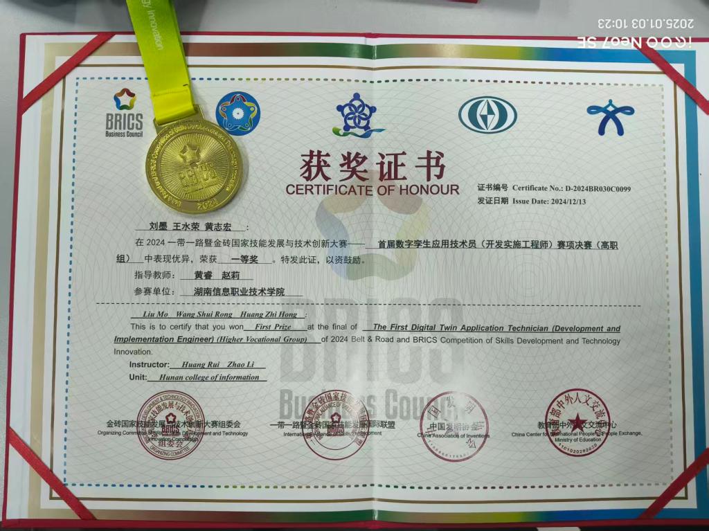 首届数字孪生应用技术员(开发实施工程师)赛项(高职组)一等奖