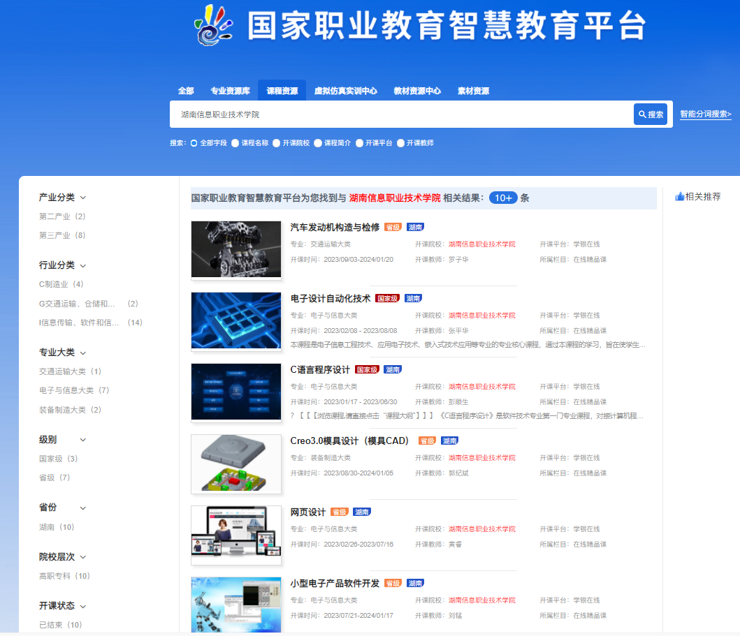 学院将在线开放课程建设作为深化教育教学改革、提升人才培养质量的重要抓手,坚持需求牵引、应用为王原则,构建分类分层在线开放课程体系。从2014年起着力培育、建设在线开放课程体系,目前立项国家在线精品课程3门、省级精品在线开放课程32门、院级精品在线课程95门。学院积极发展“互联网+教育”,引进“超星慕课”网络学习平台,实现信息技术与课程教学深度融合,持续开发优质数字教学资源。从产教融合切入,引领学生参与实践;搭建培训体系,促进教师课堂改革;构建数字生态,实现专业数据化治理,使专业技能与行业产业紧密对接,并及时反馈到人才培养方案,根据行业变化动态调整人才培养方案,打通人才链、产业链与教育链。以平台升级、资源开发、数据赋能为基础,让数字资源大放异彩,让智能课堂深入学涯。打造校级智慧教育平台,目前学院网络学习平台上运行的课程500余门,总访问量达5500余万人次;持续培育和强化在线课程的建设与应用,在学银在线平台上线课程85门,在国家智慧教育平台上线课程10门,选修人数累计达到40万余人,涵盖400余所高校,产生了良好的辐射作用。