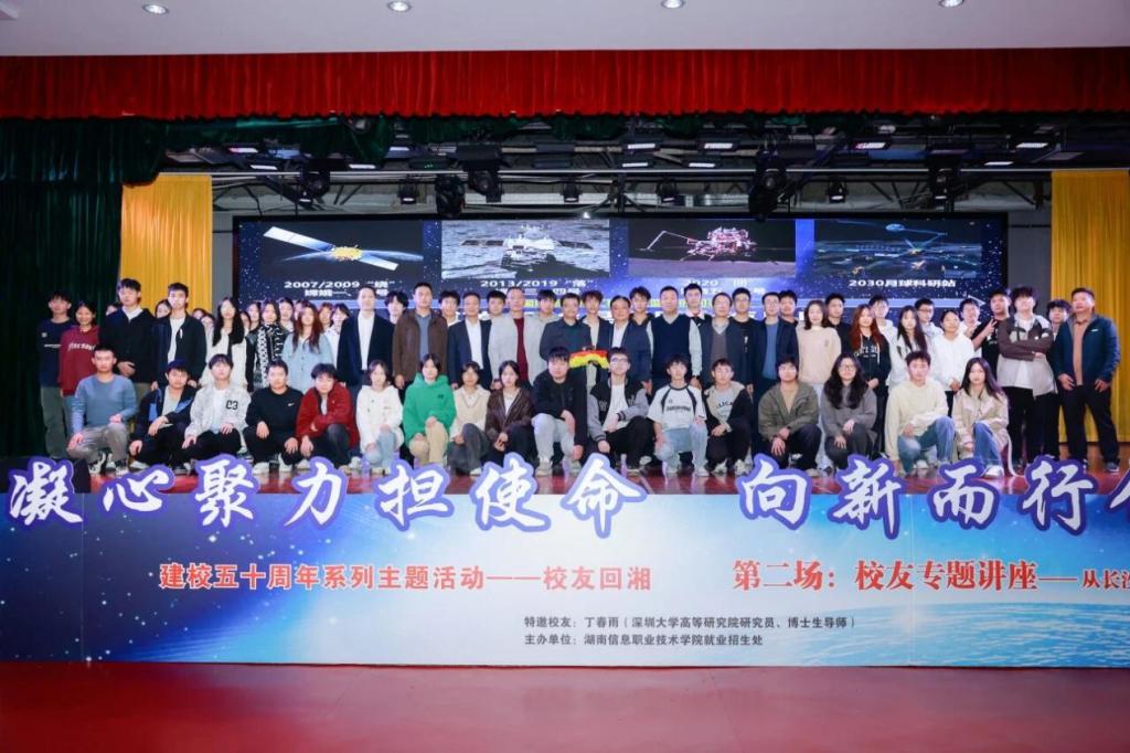 这场跨越星辰大海的校友重逢,凝聚了校友与母校的深厚情谊,点燃了新一代学子科技报国的梦想。从湘信院到月球,这不仅是地理距离的跨越,更是梦想与现实的完美对接。在未来的发展道路上,学院将继续秉承“为党育人、为国育才”的初心,培养更多服务国家、贡献社会的优秀人才,为实现中华民族伟大复兴的中国梦贡献湘信力量。
