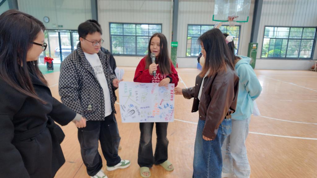 绘画体验环节是本次活动的亮点,各小组围绕“我们理想的班级/团队”主题,用彩色笔在海报纸上共同创作蓝图,将“信任、包容、协作”等感悟融入作品。每组派代表上台分享创作理念与参与感受,在交流中进一步凝聚共识,提升团队协作意识。整场活动中,专家团队凭借专业素养与丰富经验,引导学生真诚表达、积极互动,现场氛围轻松融洽、暖意融融。参与学生纷纷表示,“活动收获满满,这些游戏和体验特别贴近我们的生活,不仅缓解了学业和人际上的压力,还让我们更清楚地了解自己的情绪,学会了更好地与同学沟通”“和大家一起创作蓝图的过程很有意义,感受到了集体的力量,也学会了换位思考”。