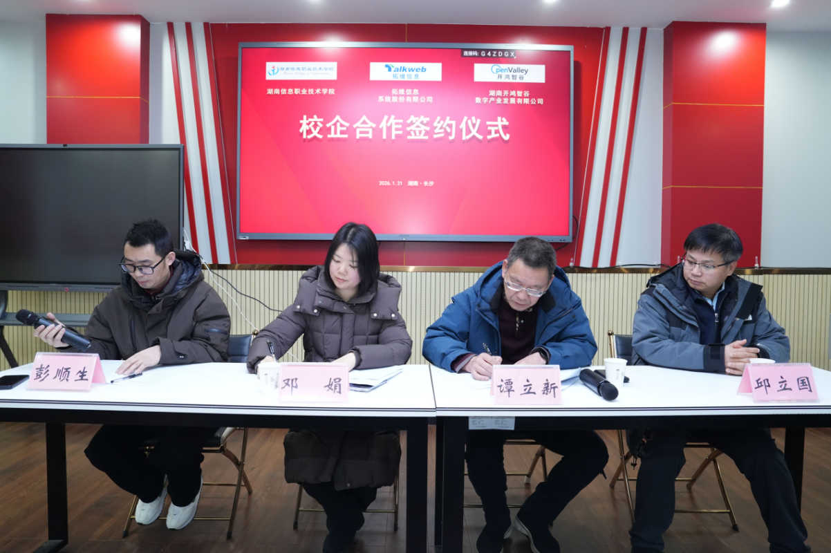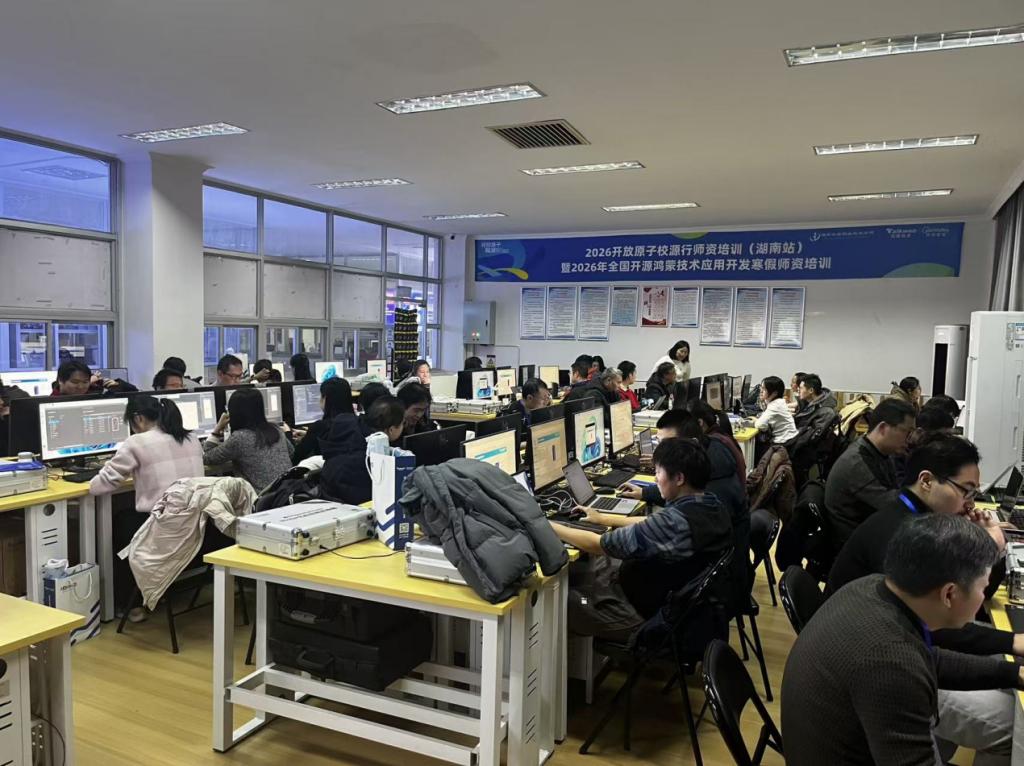 近日,由全国新一代自主安全计算系统行业产教融合共同体与全国新一代智能信息系统行业产教融合共同体联合指导,beat365与拓维信息系统股份有限公司(以下简称“拓维信息”)及旗下子公司湖南开鸿智谷数字产业发展有限公司(以下简称“开鸿智谷”)联合承办的“2026开放原子校源行师资培训暨全国开源鸿蒙技术应用开发寒假师资培训(湖南站)”在beat365顺利举办。beat365党委委员、副院长谭立新,拓维信息、开鸿智谷产业与人才发展部总裁邓娟及校企代表参加开班仪式。