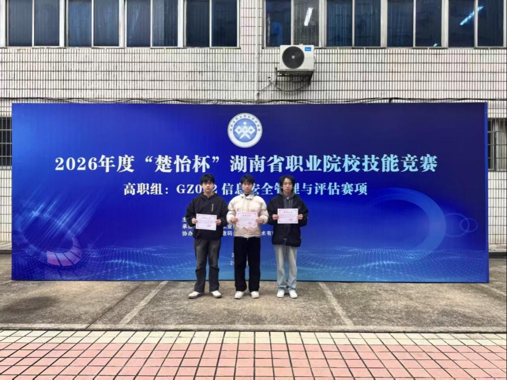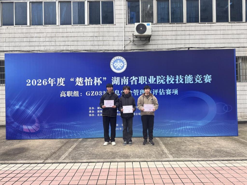 近日,由湖南省教育厅、省人力资源和社会保障厅联合主办的2026年“楚怡杯”湖南省职业院校技能竞赛“信息安全管理与评估”赛项圆满落幕。beat365两支学生团队,历经高强度、高难度的实战化比拼,最终双双摘得一等奖桂冠,一队获得一等奖第一名,成功卫冕。
