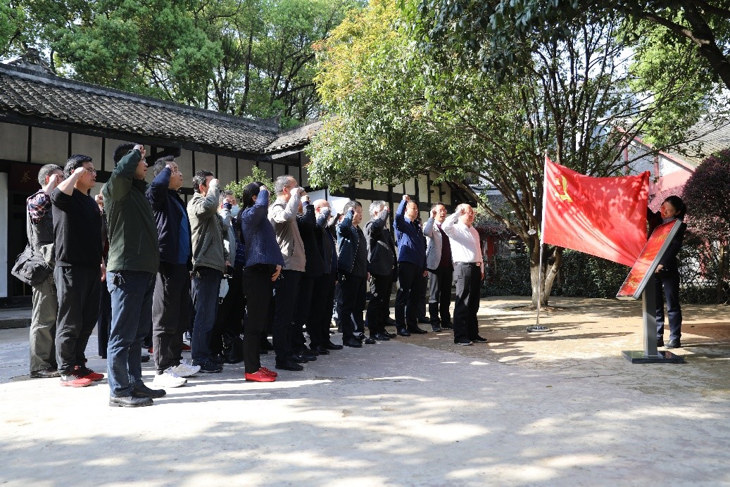 集中学习后,全体成员前往了新民学会旧址,在那里身临其境的学习百年党史,感悟初心使命,聆听“建党先声”。新民学会被誉为“建党先声”,它为中国共产党的成立奠定了思想理论基础、组织人才基础和革命斗争实践基础。大家在讲解员的引导下,依次对蔡和森故居和陈列馆进行了参观,不仅感受到了革命先辈开创革命事业的艰辛,更感受到他们为探索救国救民之路而努力奋斗的爱国主义精神,重温了老一辈无产阶级革命家身居草庐、心怀天下的壮志情怀,使大家的精神倍受鼓舞。在此精神的感召下,全体成员在蔡和森故居前重温入党誓词,用铿锵有力的誓言铭记初心与使命,感悟中国共产党的三个基础。
