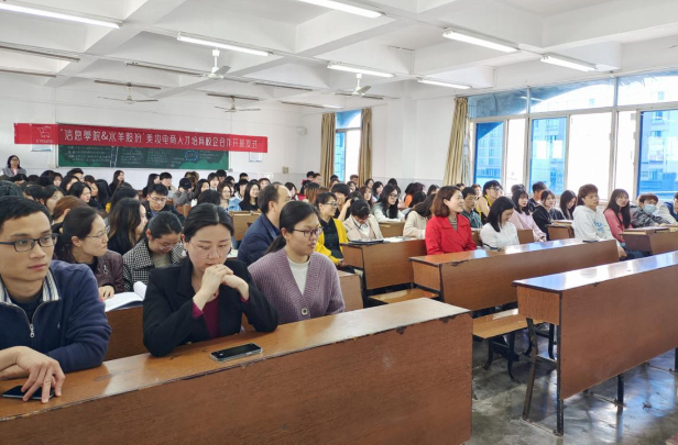 4月20日,经济管理学院举办水羊股份学徒班开班仪式,正式拉开对2020届美妆行业电子商务专业人才培养的序幕。经济管理学院院长卢立红、副院长黄建国、电商专业带头人喻红艳、电子商务教研室全体教师、商务2002班和商务2006班99名同学参加活动。