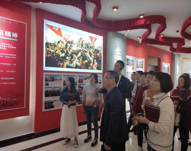 在双桥村“长征精神载初心”展厅,双桥村村书记的生动解说让全体党员教师仿佛穿越了时空,他带领着大家“重走”红军的长征之路。不忘来路,方得始终,循着革命先辈的足迹,全体党员教师重温那段党领导人民进行革命的伟大历史,并表示将在今后的工作岗位中坚定信心、传承长征精神,走好新时代长征路。