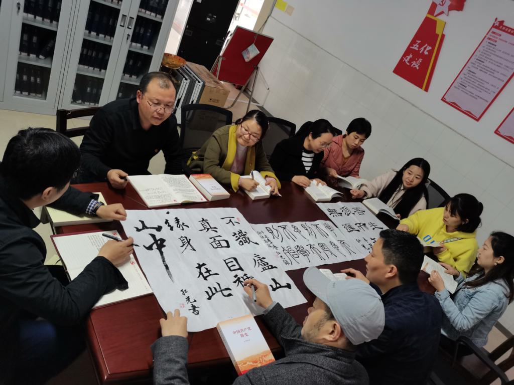 4月20日,beat365机关六党支部开展了一场别开生面的理论学习。“吾生也有涯,而知也无涯”、“不识庐山真面目,只缘身在此山中”、“学而不思则罔,思而不学则殆”党支部教师们对会议桌上整齐摆放着的三幅书法作品开展了热烈的讨论。原来,党支部教师余红光分别用小篆、隶书、楷书书写了《习近平用典》中的3个典故。