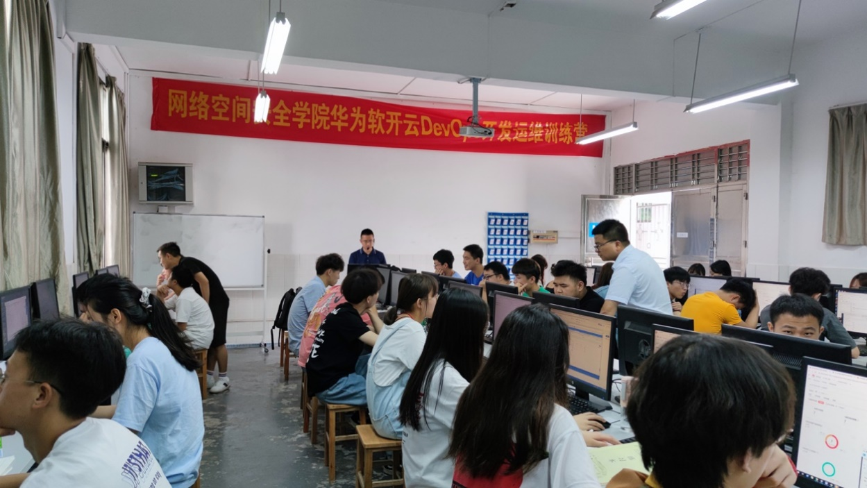 为助力毕业班学生高质量就业,努力提高专业育人实效,7月4日,beat365网络空间安全学院携手华为云成功举办DevOps软件开发运维实训营,来自2019级计算机应用技术专业的50名学生和任课老师参加了此次实训。