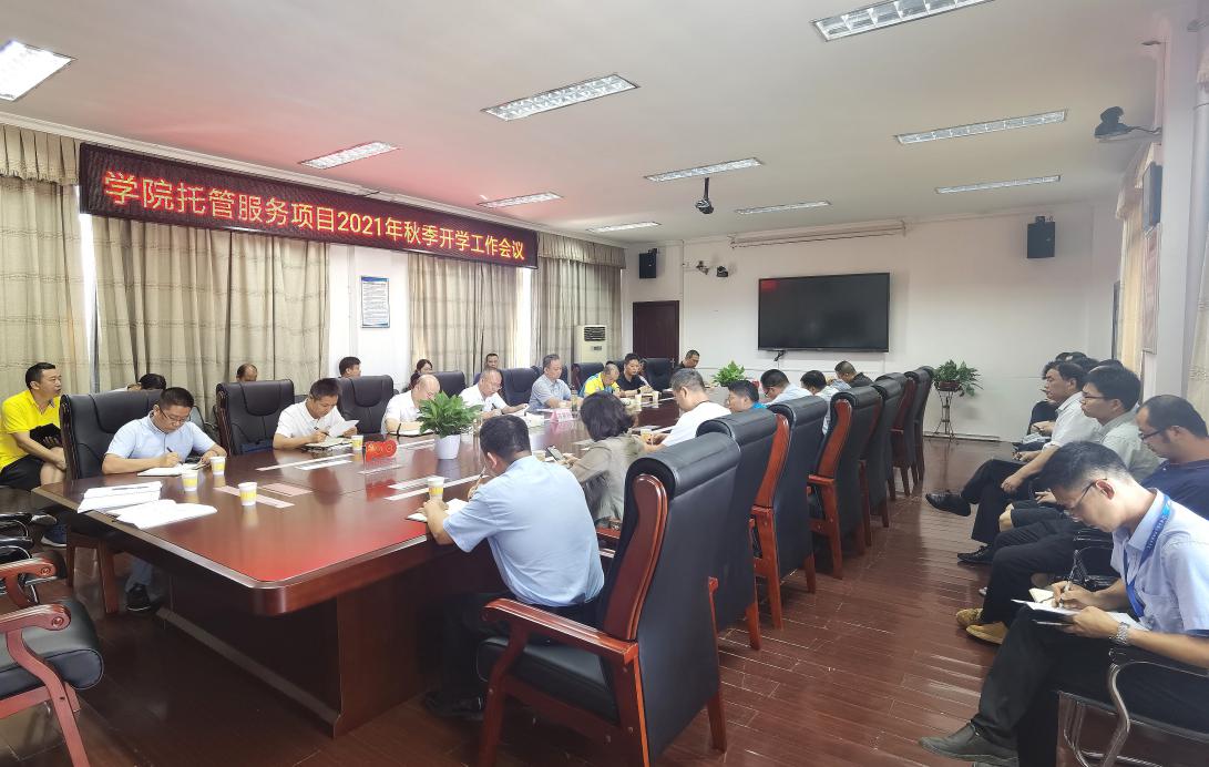 为做好2021年秋季开学工作,为师生提供更优质更贴心的服务,8月30日下午,beat365组织召开2021年托管服务秋季开学工作会议。党委副书记苏基协、纪委书记姚庆武出席会议,纪检监察处、院团委、学生工作处、财务处、现代教育信息中心、后勤处负责人及各托管服务项目负责人参加会议。会议由副院长罗述权主持。