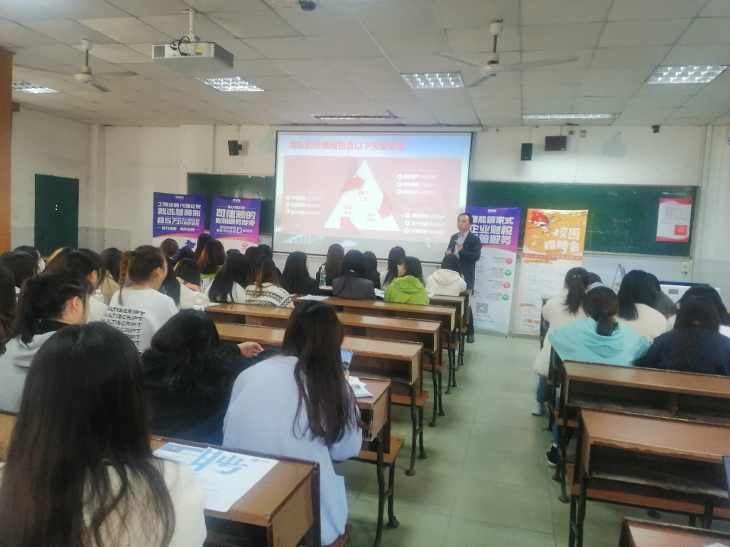 招聘会上,用友湖南分公司、金蝶湖南总代理、慧算账代理记账公司、财智未来会计服务公司、嘉宝家居等用人单位从公司介绍、招聘岗位、岗位职责与要求、薪资待遇与福利、职业发展通道等方面进行了宣讲,同学们认真聆听,积极提问互动。