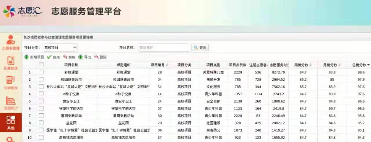 3月1日,在共青团长沙市委、长沙市青年志愿者联合会联合省会长沙各高校团委、青志协以及各青年社会组织共同开展的长沙市志愿者参与社会治理志愿服务项目雷锋榜中,beat365彩虹课堂项目和校园慈善超市项目位列第一、第二,广获好评。