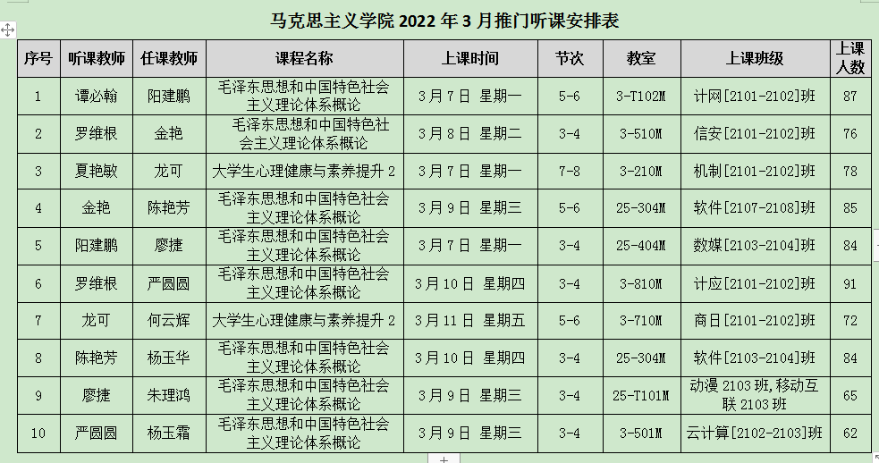 3月份马克思主义学院的“推门听课”活动在部门领导的带领下,于3月7日拉开了序幕。