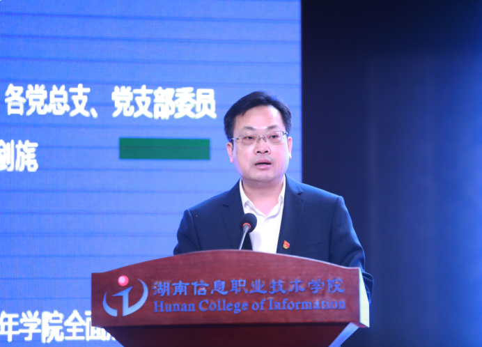 贺代贵代表学院党委作了题为《永葆自我革命精神,以全面从严治党新成效引领学院高质量发展新篇章》的工作报告。他指出,过去的一年,学院党委始终坚持严的主基调,扛牢管党治党政治责任,在狠抓政治建设、强化思想引领、夯实组织基层、锻造干部队伍、持续正风肃纪和推进党风廉政建设等方面取得了明显成效,学院政治生态和育人环境根本好转。
