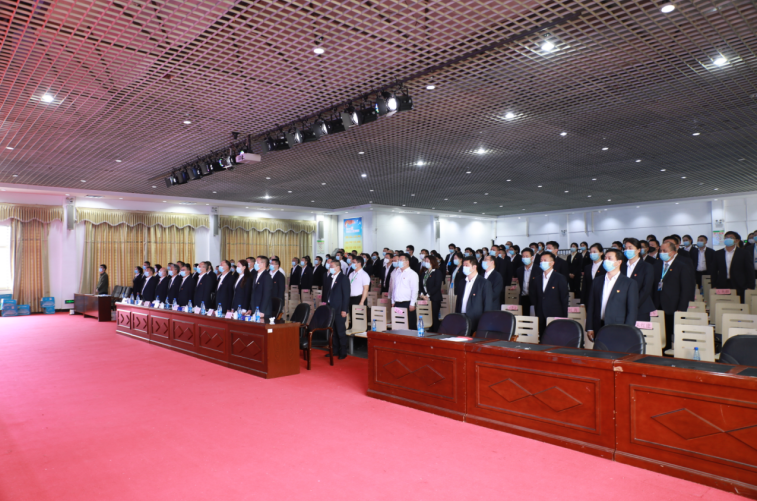 与会人员观看了警示教育片《压倒性力量常在》,并向贺代贵递交了《廉洁从政承诺书》。大会在激昂的《国际歌》歌声中落下帷幕。