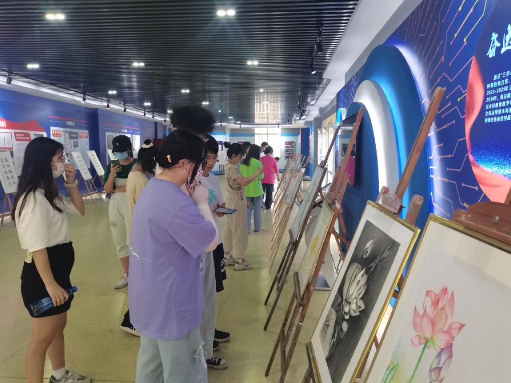 “看到展出的绘画作品中不同姿态的莲花,我立马想起了宋代大儒周敦颐写下的《爱莲说》,莲花‘出淤泥而不染’代表了君子高洁的品行,值得我们青年大学生学习。”正在观看画展的刘同学说道。学院师生以丹青妙手书党恩、写正气、画担当、倡廉洁,这些作品主题鲜明,风格各异,既展示出学院开展清廉学校创建的成果和大力发展艺术教育的成效,又充分展现了广大师生崇廉尚美、洁身自爱的美好追求,给人以精神上的极大鼓舞。