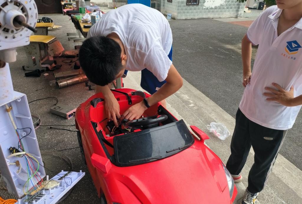 志愿者维修村民家的玩具汽车