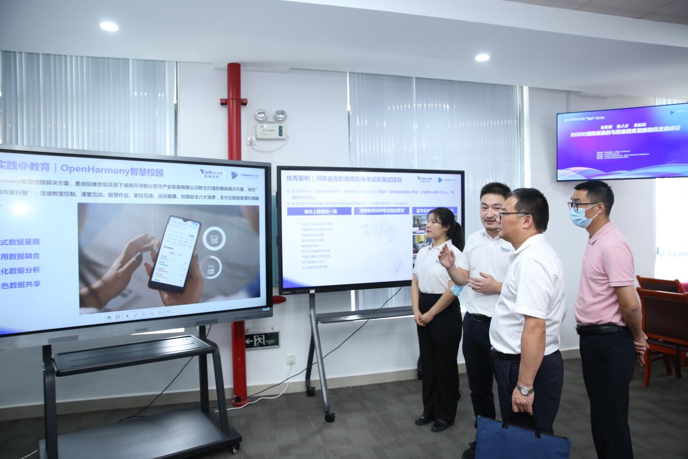 朱焕桃代表学院与拓维信息系统股份有限公司(简称拓维信息)、湖南开鸿智谷数字产业发展有限公司(简称开鸿智谷)签订三方合作协议。朱焕桃指出与拓维信息、开鸿智谷的校企合作是学院探索校企合作、产学育人的多元化职业教育新模式,将切实提升院校学生的OpenHarmony应用实践与创新能力,助力院校培养OpenHarmony行业所需人才,推动OpenHarmony生态建设与繁荣。
