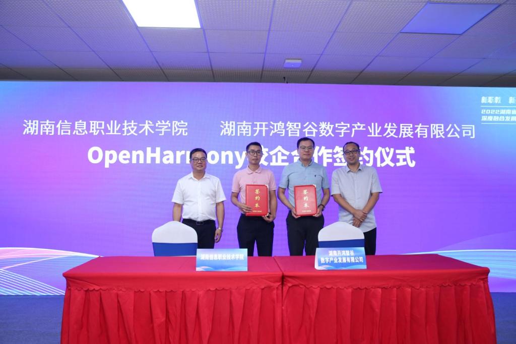 学院与企业共建“湘信院·开鸿智谷OpenHarmony产业学院”,将在全方位育人、OpenHarmony应用技术课程资源开发、产学研融合、师资队伍技术提升、高水平实习实训基地建设、面向社会培训及技术服务、现代学徒制人才培养、鸿蒙认证考试中心、“鸿蒙技术创新应用研究院”等多领域建立深度战略合作关系,为社会输送更有价值的创新型人才,助力长沙软件业再出发,为强省会战略提供人才支撑和智力支持。