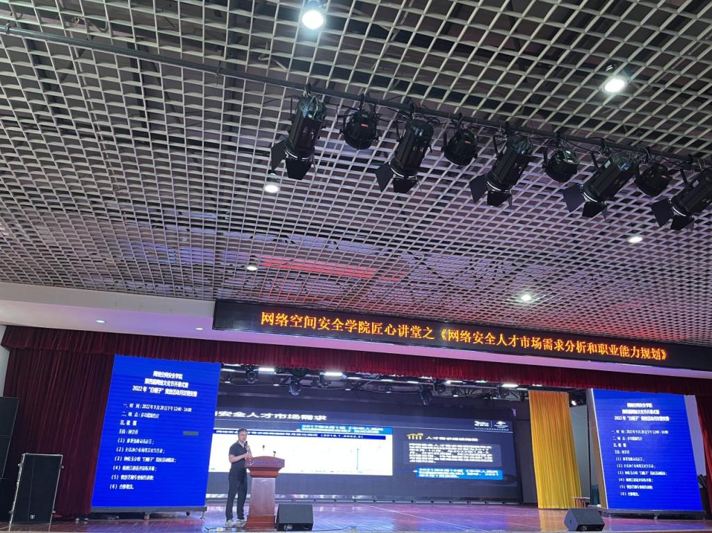 开幕式中,由网络空间安全学院党总支书记作动员讲话,他指出,举办本次活动的目的是为了彰显校园文化特色,让新生感受我校丰富多彩的文化氛围。奇安信集团资深网络安全专家的讲座,将开幕式的整体氛围推向高潮,同时也拉开了网络文化节的序幕,讲座激励2022级新生学子以本次网络安全竞技比赛为起点,打好专业基础,以崭新的面貌迎接新的知识开端。