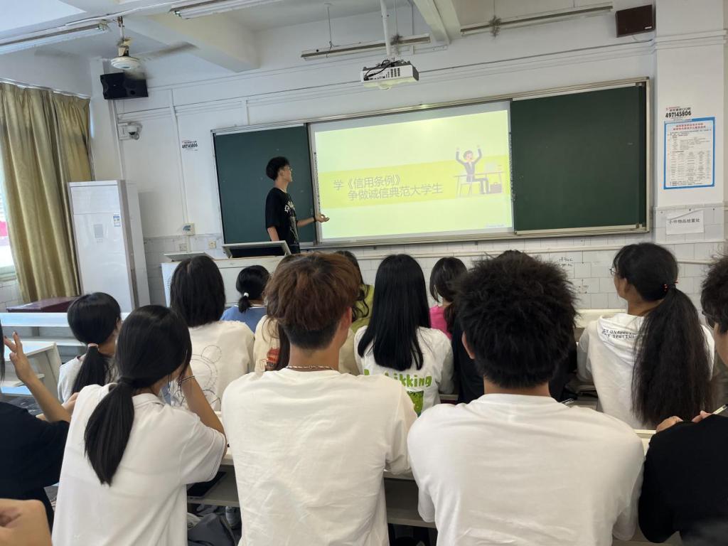 集中组织学。9月27日,各二级学院先后开展了《条例》主题学习班会,集中观看了由湖南省税协主办、湖南省发改委授课的《湖南省社会信用条例》公益讲坛,学习《条例》的立法背景、出台意义以及条款原文。学习活动之后,全体学生针对《湖南省社会信用条例》的重大意义和作用开展了大讨论,进一步加深了对构建社会信用体系的认识。“作为当代大学生青年,要贯彻落实湖南省信用条例。诚信简单来说就是诚实守信,然而人与人之间最基础的东西就是诚实守信”;“现在社会信用太重要了,一旦失信了,不仅会被限制消费,不能乘坐火车、飞机等交通工具,严重的还将被追究刑事责任”;“一定要严格遵守《条例》,做到诚实守信”;“言而无信,不知其可也”。学生们争先恐后分享学习感想。