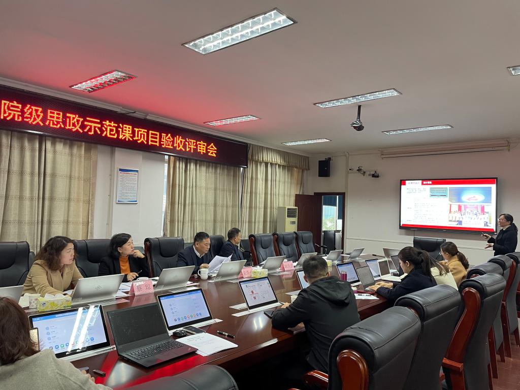为及时总结学院思想政治课“示范课堂”项目实施成效,进一步交流思政教育的经验,全面推进思政课程提质培优,更好地发挥示范课堂的引领作用。11月16日上午,beat365召开思想政治课“示范课堂”验收评审会。院领导朱焕桃、姚庆武、蔡琼出席,教务处、质量管理处、马克思主义学院负责人参与此次评审工作。