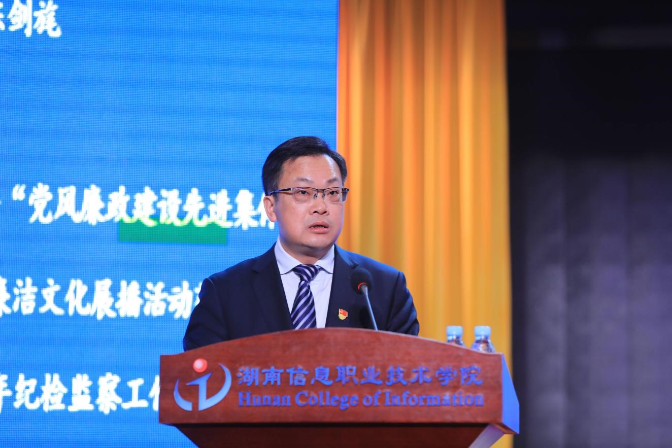 他强调,在新的历史起点,深入推进全面从严治党,是学院教育事业持续健康发展的坚强保证,全院各级领导干部要坚持以上率下、带头示范,以“头雁效应”激发“雁群活力”,政治上要“过得硬”、责任上要“扛得稳”、关键时刻要“顶得上”。全院上下要聚焦党建领航、培根铸魂、强基赋能、清廉湘信、同心聚力和平安校园等六大工程落地落细。